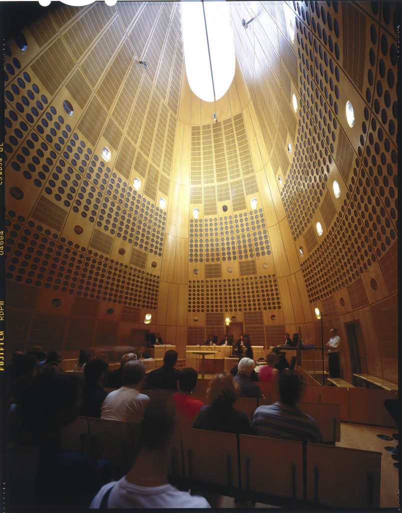 One of the most unusual courts buildings to be found in the world, it exudes an openness and relaxed atmosphere few other courthouses can offer. The interior of the pods are more reminiscent of a cathedral than normal law courts, and as such, lends a grand aura of ceremonial symbolism to the proceedings that is missing in many modern courts.