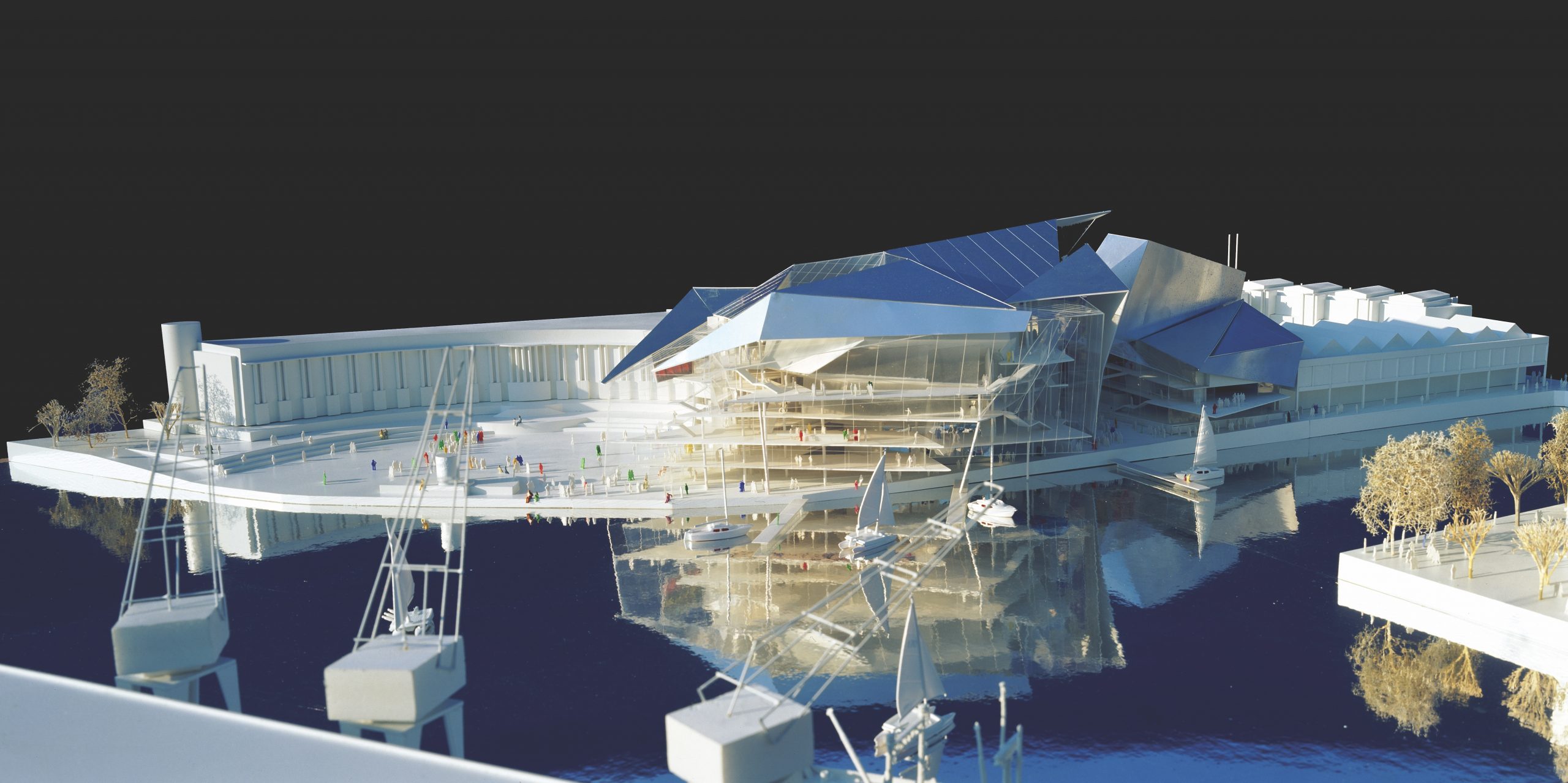 • Harbourside Performing Arts Center Competition, Bristol, UK, by Behnisch Behnisch and Partner (1996).