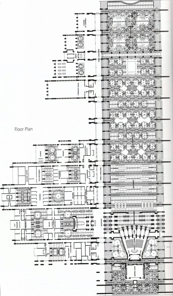 This building, situated on a knoll overlooking a main road, had a distinct presence which included a giant atrium that not only separated city/county government offices and law courts, but could accommodate up to 2,000 people for events. Golemon Bolullo won over more than 100 entries in a one-stage process. Aside from the architectural expression of their design, it foresaw an eventual merger of city and county governments by locating corresponding agencies on the same levels.