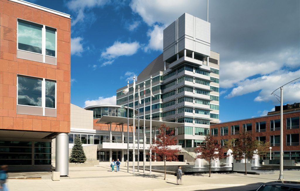 This is about finding the right formula for the insertion of a modern complex into an existing nondescript downtown site as an instrument of revitalization. The opening of the project was accompanied by an exemplary publication about the competition, Competing Visions – The Kitchener City Hall Competition, edited by Detlef Mertins.