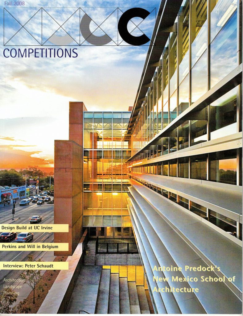 The site of this competition was fortunately moved from a location in the campus interior to a high visibility spot directly at the entrance to the campus on Albuquerque’s Central Street (Route 66). The main change in the design was the addition of the library to the top floor.