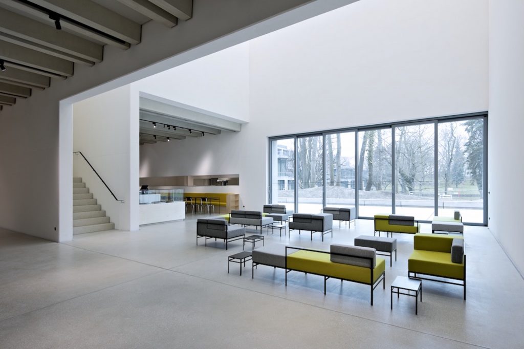 Located to the rear of a high visibility plaza, and, as a magnet for architecture buffs, the Museum not only offers a comprehensive introduction to the early Bauhaus era, but illustrates how a “box” can make use of a site and facade treatment including night lighting to make an extraordinary impression on the visitor.