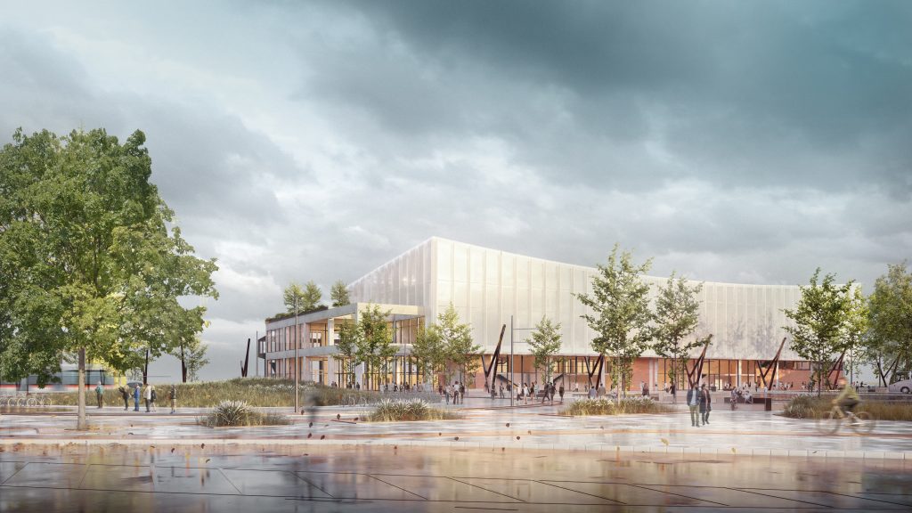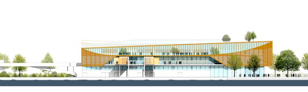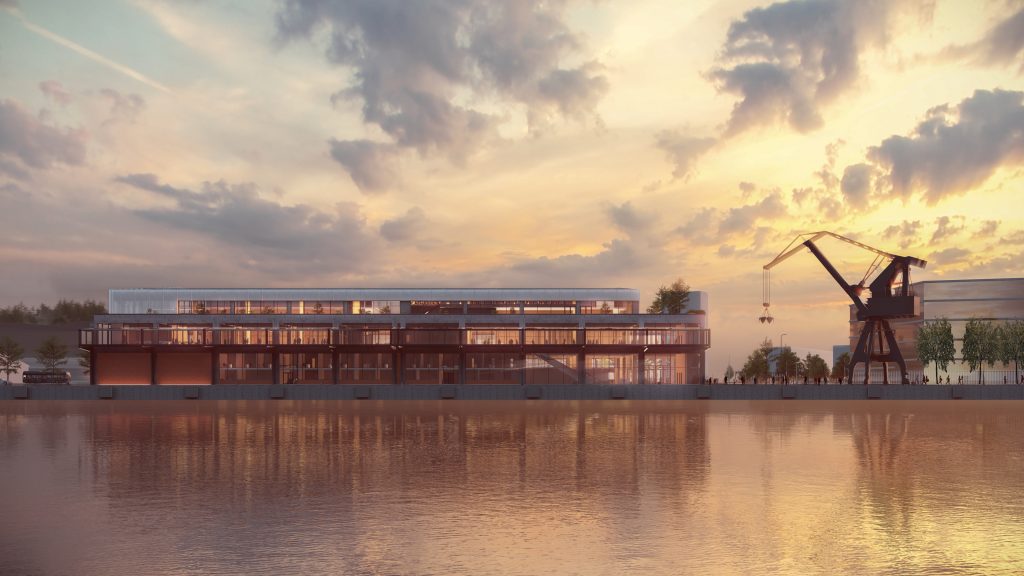 1st Place: Zaha Hadid Architects – night view from river – Render by Negativ