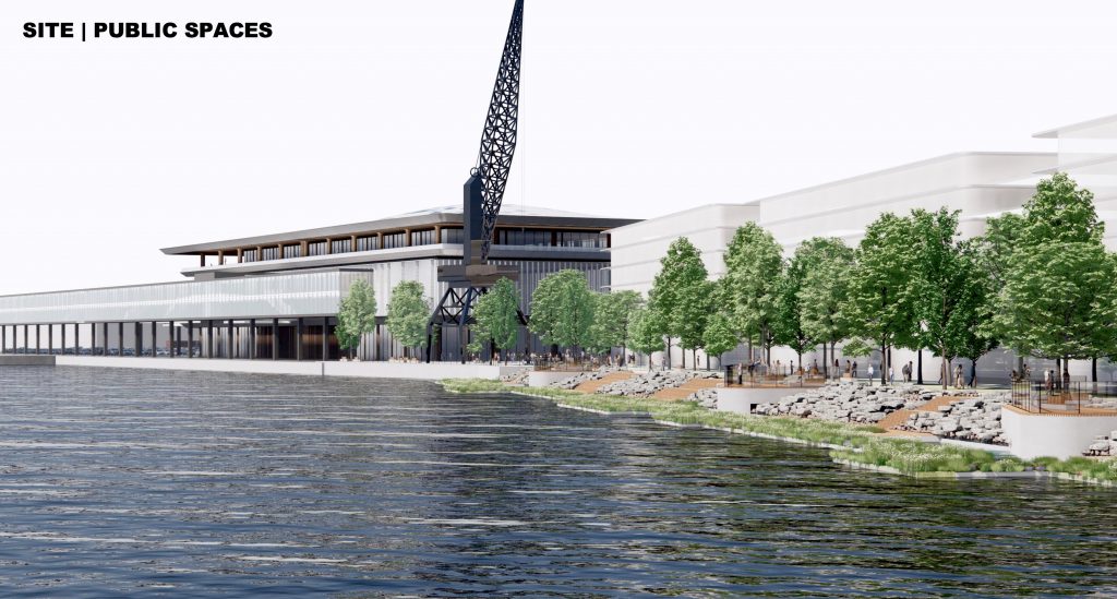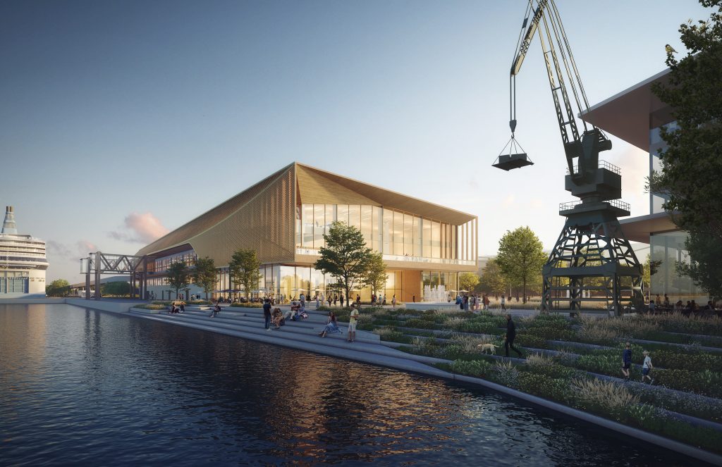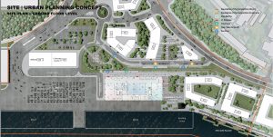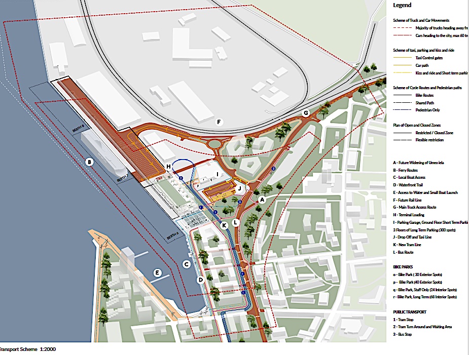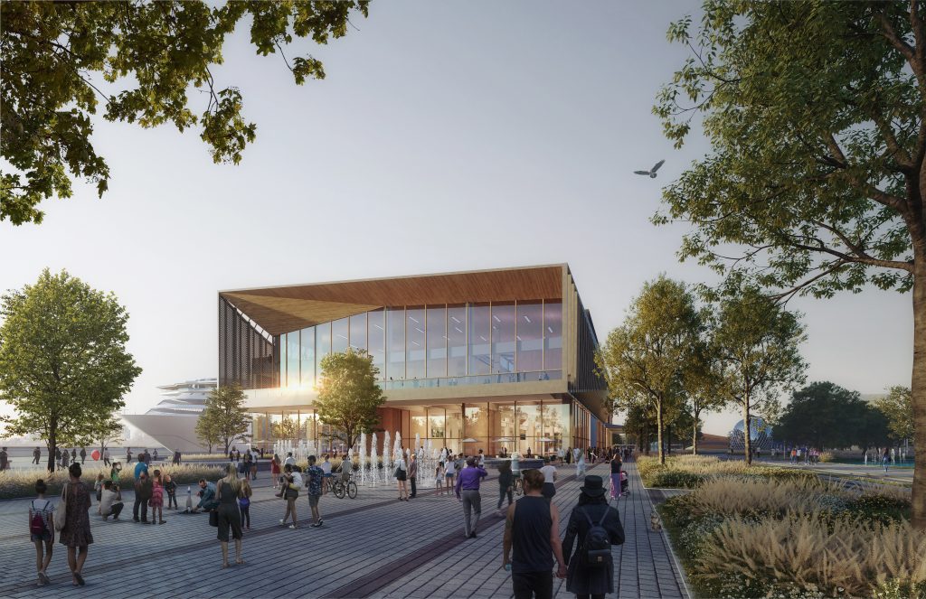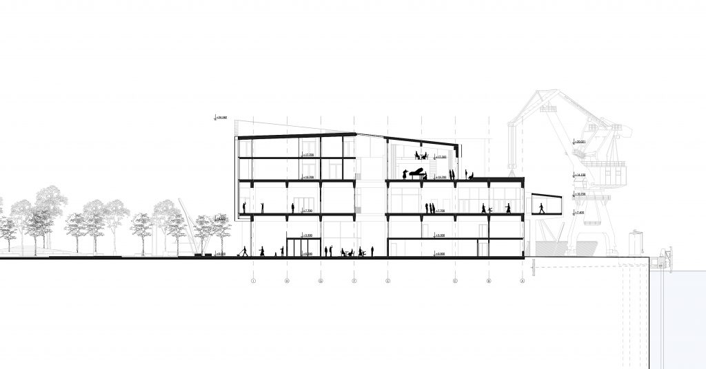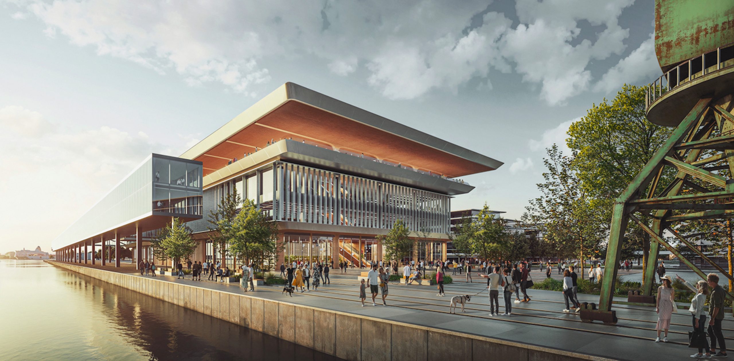 The first step toward establishing a more tourist friendly presence and simultaneously upgrading the area along that section of the city’s riverfront was to stage a design competition. International design competitions were nothing new for Riga, having staged a competition for the revitalization of the city’s Rail Terminal in 2016. The focus in this case is the repurposing of an existing shipping warehouse into a new 20,000 m2 ferry and cruise ship terminal. Because this is a reinforced concrete structure, it would place certain limitations on interior design, taking passengers on a linear journey to their destination. At the moment, the outside adjoining area has been used for container storage. That is all to change, for those participating in the competition were asked to design the entire area around the building and adjoining riverfront. Finally, the site would be converted to serve as a “multi-modal transport hub,” assuming this building would also serve a multiplicity of functions for the community—beyond its passenger processing requirements.