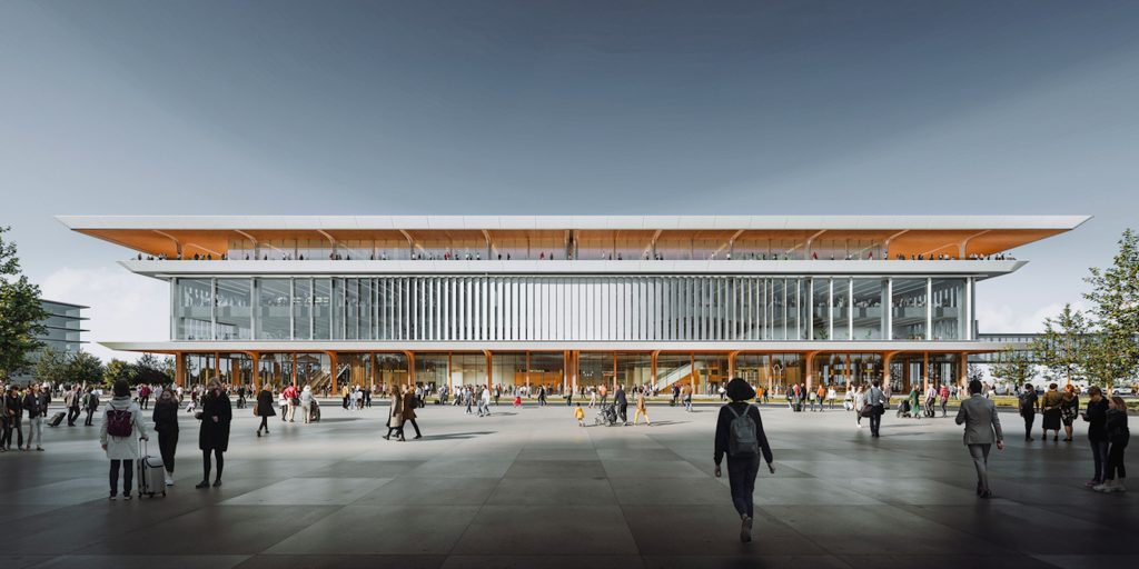Aside from the building’s existing concrete support system, Zaha Hadid’s comprehensive use of wood is a finish that well acts as a counterbalance to the brutalist reality of the existing structure. Secondly, except for the a few places in the interior, most notably around the elevator openings in the platforms, the typical Zaha Hadid curvilinear style is barely noticeable, an obvious necessity in view of the preexisting support structure. The addition of the additional fourth level roof platform provides the building not only with additional options for additional programs, the undulating surface consisting of tiles and solar panels lends a certain presence to the building that sets it apart from its neighbors while providing additional shelter in inclement weather to arrivals.