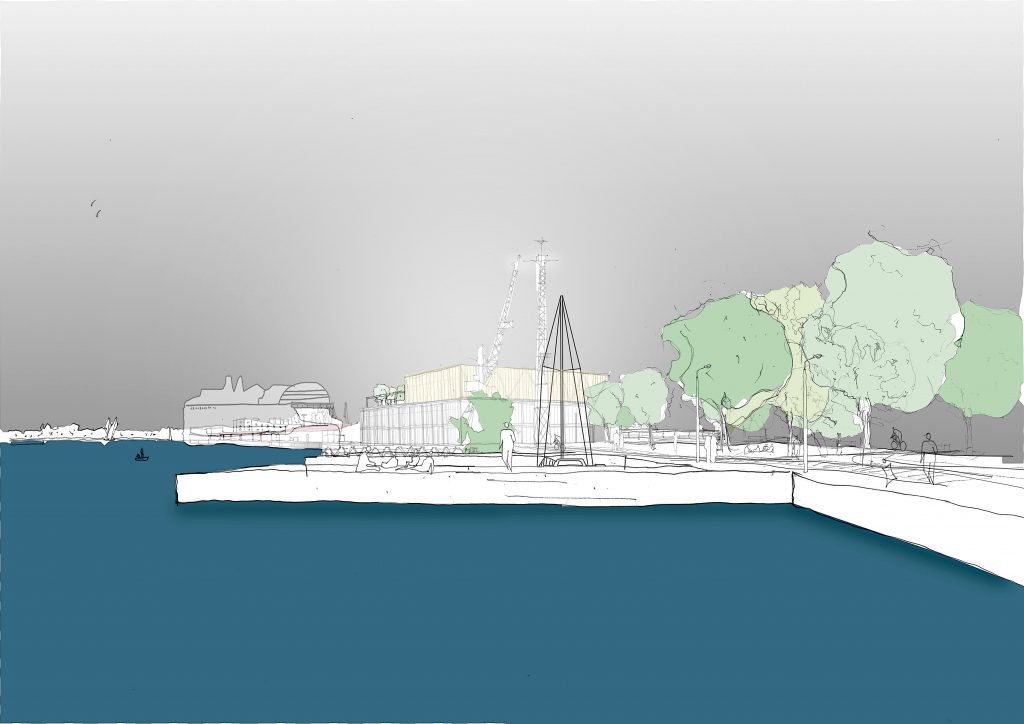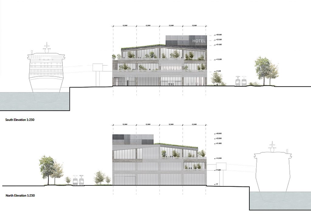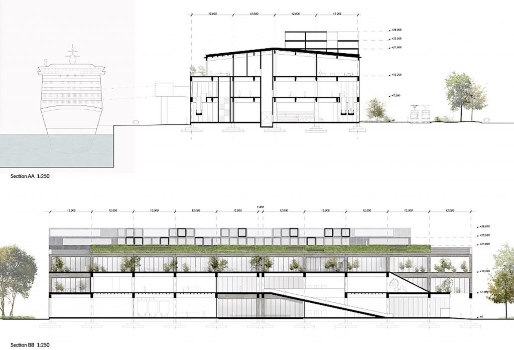 The competition itself was announced as a sketch competition. Because a cruise terminal was the main subject of the competition, the client was looking for firms that could document a history of at least one similar project from the previous five years. Before a RfQ was released, three firms were invited, each of which was to receive €10,000 for participating. They were: