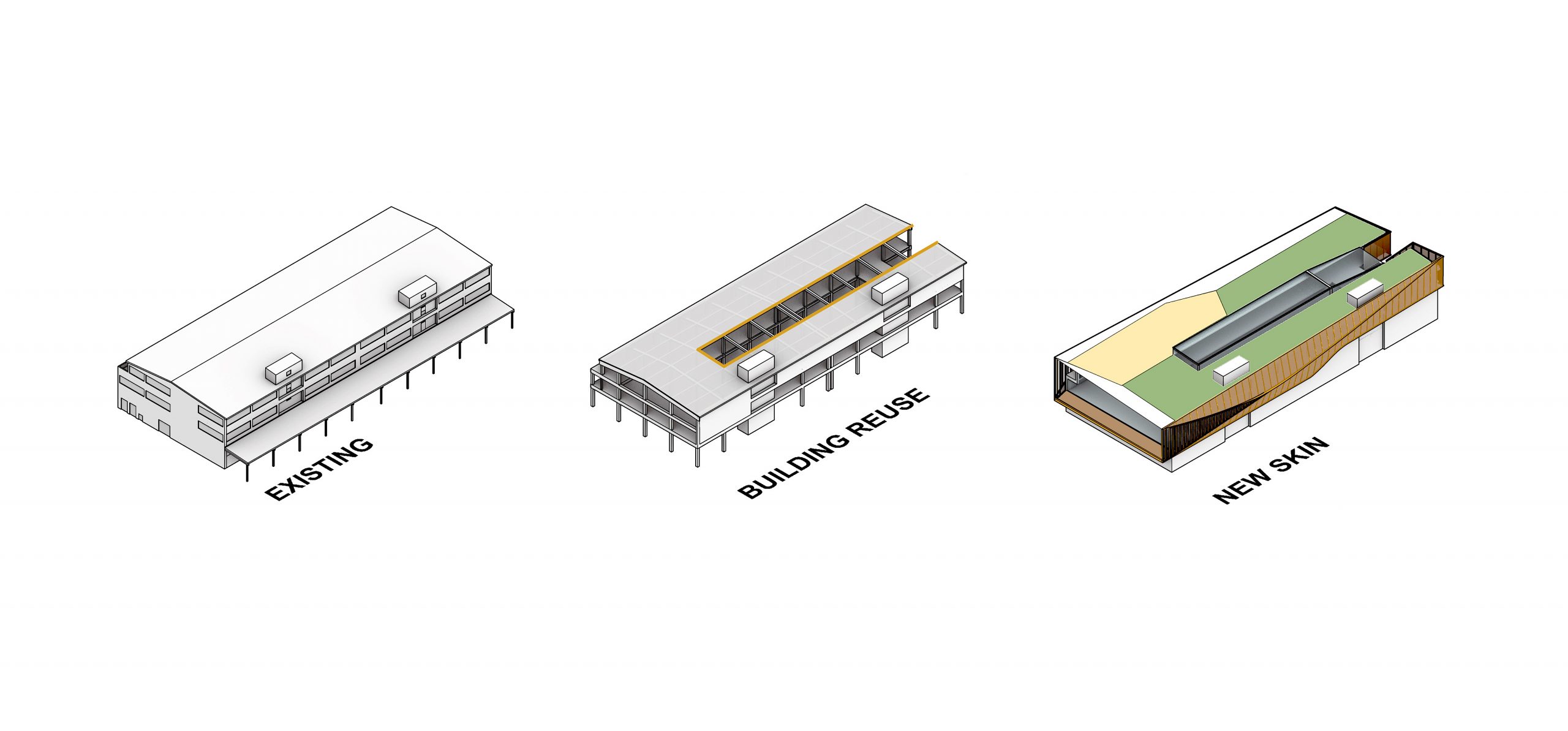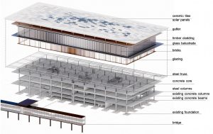 ALA Architecture’s visual expression centered on retaining the brutalist structure’s appearance in its bare-bones state. Although quite logical, it was probably somewhat risky if one assumes the client might be looking for a different kind of modernist approach—not referencing back to a preservation theme. Still, ALA did not hesitate to add more height to the structure, suggesting the addition of a two-tiered hotel. On the other hand, if budget were to become an issue, there can be little doubt that this idea no doubt would be seriously considered. -Ed