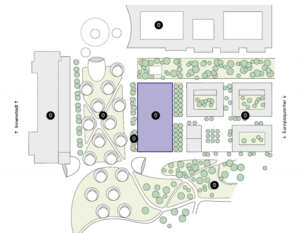 With an area of some 60 x 117 metres, the “Space for Ideas” is located next to the skylights of the future station. The area is located at the entrance to the planned Stuttgart Rosenstein neighborhood. Once the new central station is opened, the aboveground track areas will no longer be needed – an opportunity to develop a new neighborhood in the centre of Stuttgart.