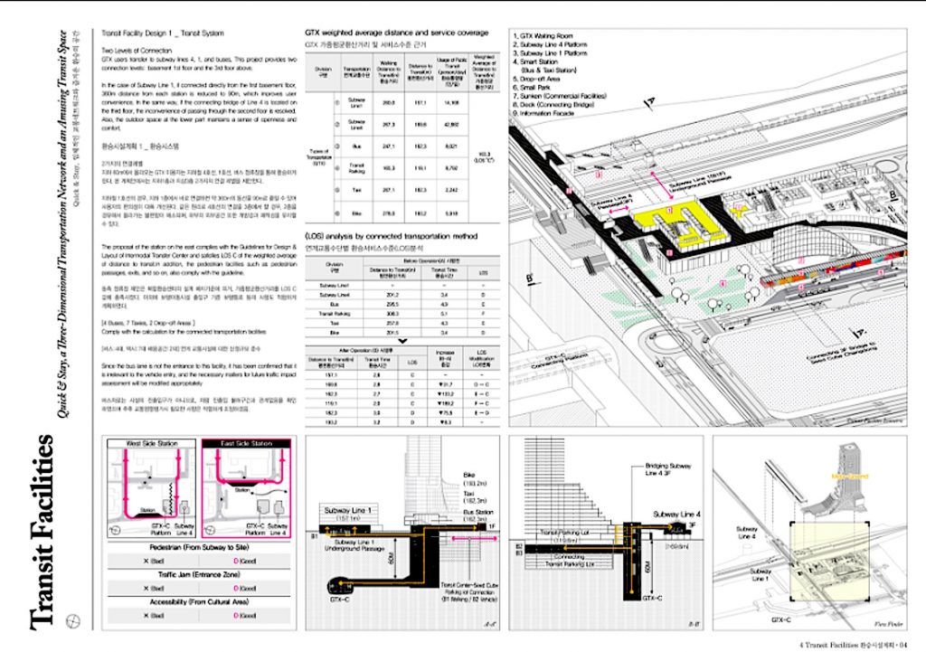 “Placement of the bus stop on the east side of the bus station may increase the number of passengers on existing lines 1 and 4. GTX core and architecture will be integrated to cope with waiting room expansion. -Juror Seungjun Kim