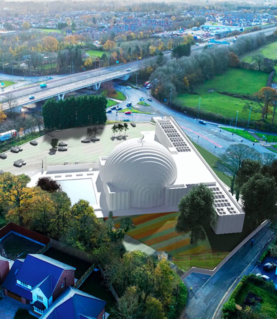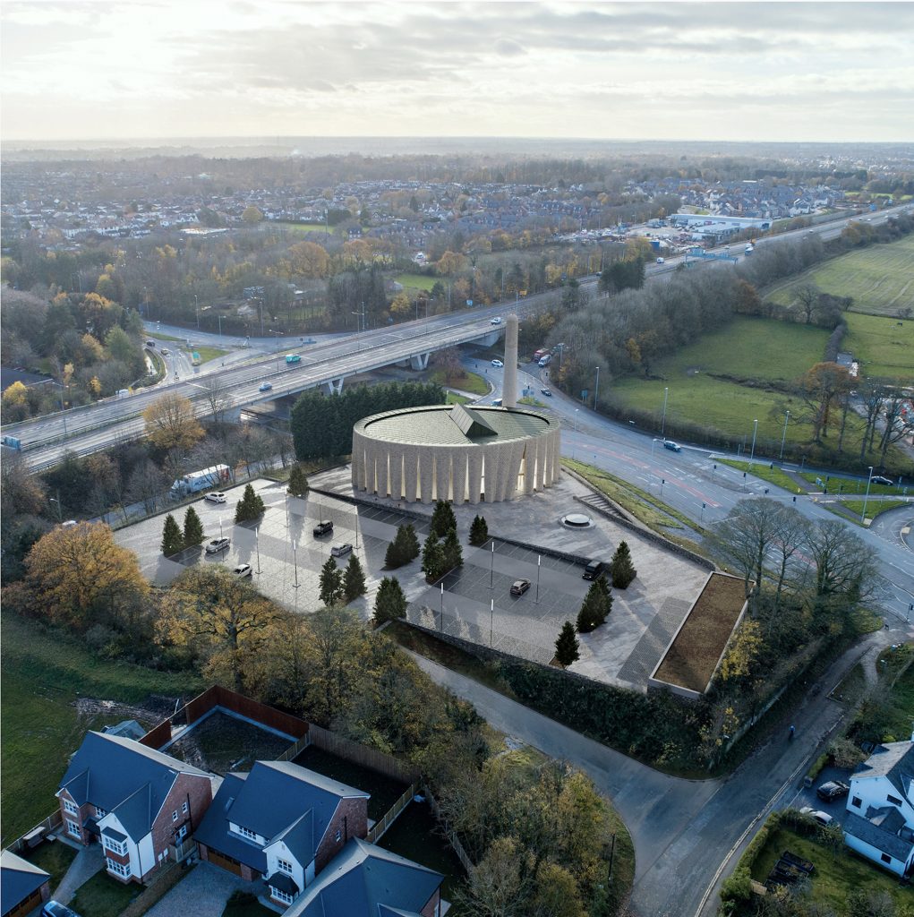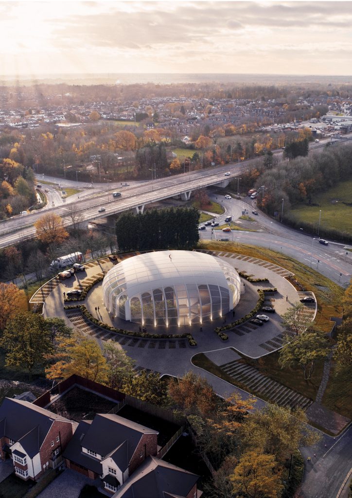 In the winning proposal for the new iconic mosque, the building’s elliptical design allows visitors to observe and appreciate the structure from various viewpoints. The minaret tower makes reference to Lancashire’s well recognised cotton mill chimneys, celebrating the local history whilst announcing the mosque’s presence in the skyline of Preston.”