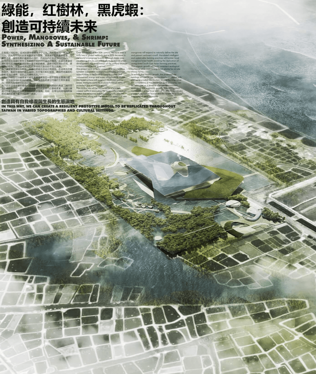 Whether it was the establishment of a shrimp industry, general water and flood abatement, or a site for bird migration, the Hsinta Ecological Power Plant competition produced a plethora of interesting approaches to mitigate the negative effects normally associated with the introduction of a power plant. With one possible exception, each of the five finalists in this international, two-stage competition showed an extensive amount of research to support their design strategies and the underlying sustainability features.